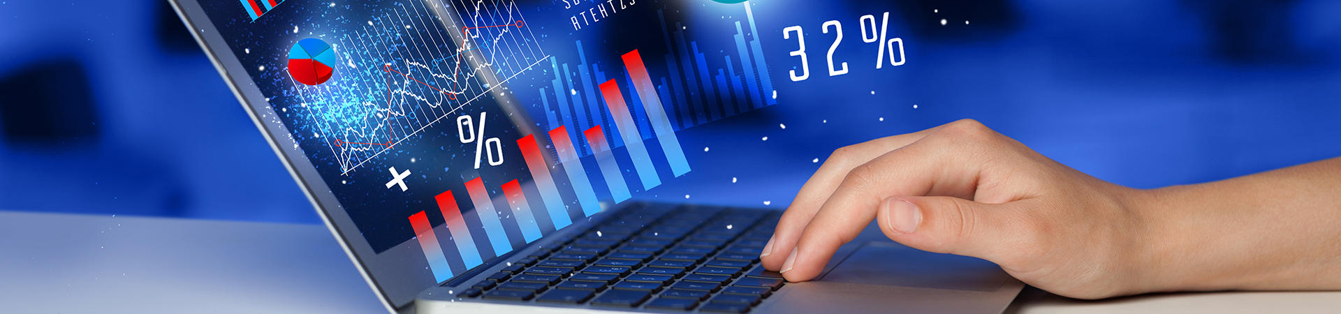 fingers typing on a laptop showing a chart